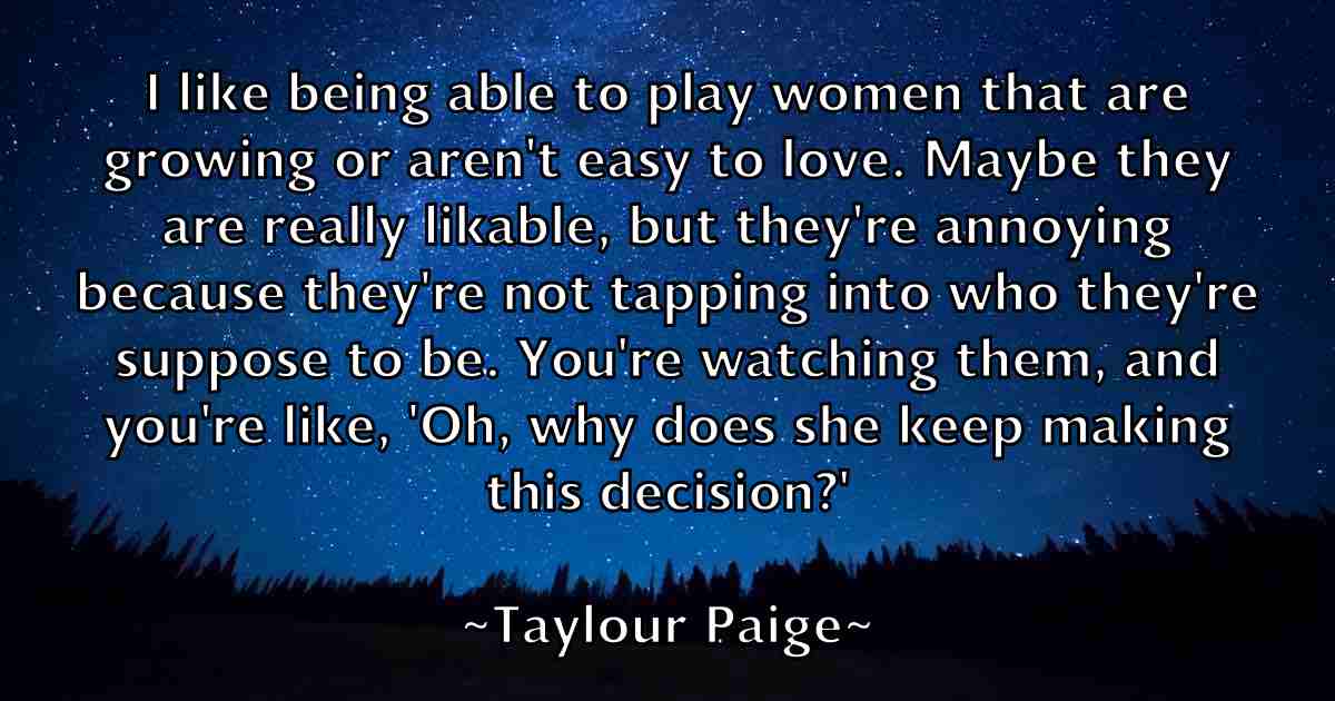 I like being able to play women that are growing or aren't easy to love. Maybe they are really likable, but they're annoying because they're not tapping into who they're suppose to be. You're watching them, and you're like, 'Oh, why does she keep making this decision?'