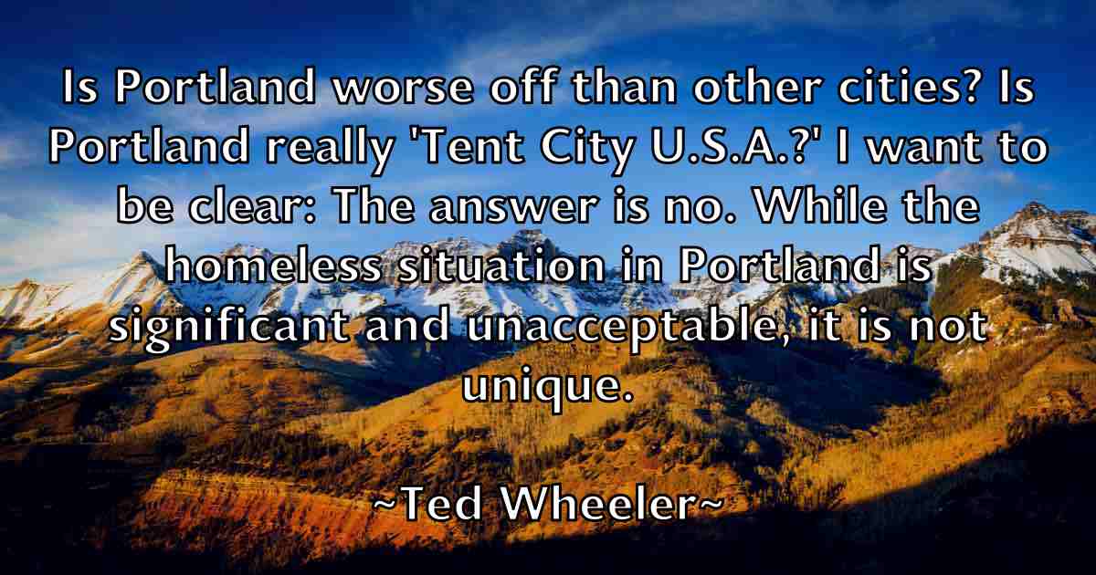 Is Portland worse off than other cities? Is Portland really 'Tent City U.S.A.?' I want to be clear: The answer is no. While the homeless situation in Portland is significant and unacceptable, it is not unique.