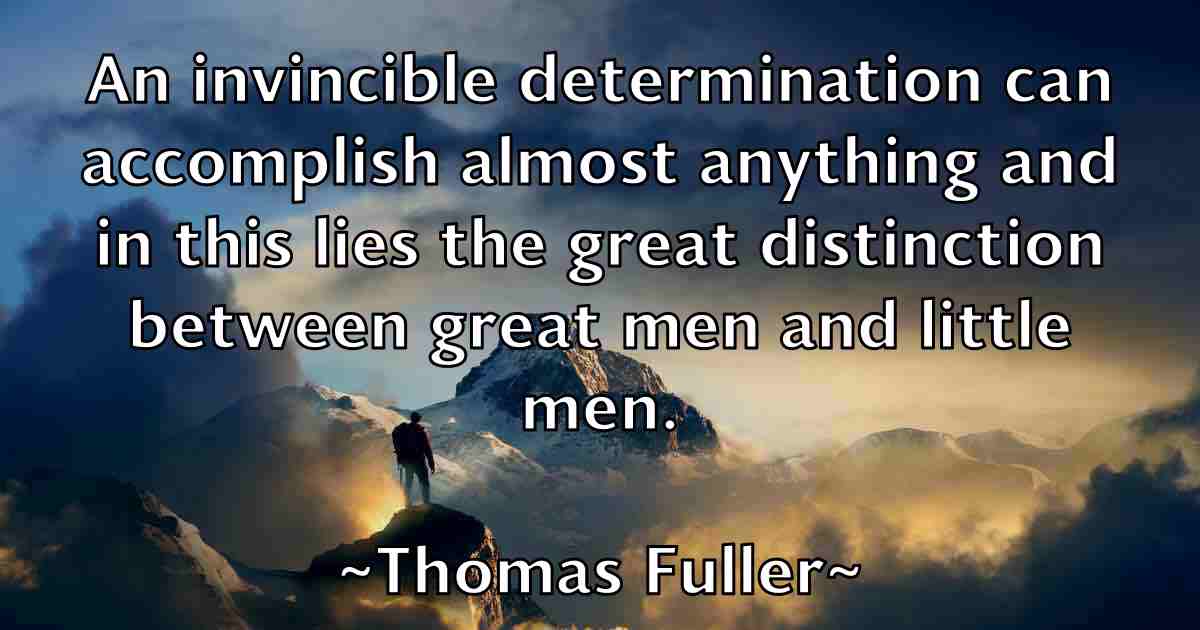 An invincible determination can accomplish almost anything and in this lies the great distinction between great men and little men.