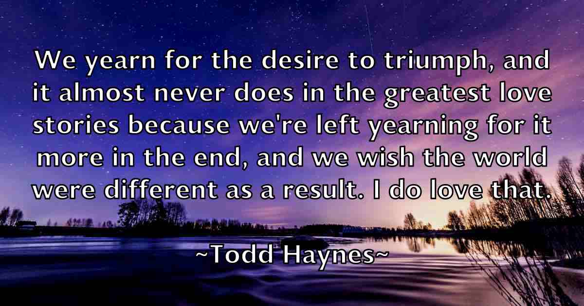 We yearn for the desire to triumph, and it almost never does in the greatest love stories because we're left yearning for it more in the end, and we wish the world were different as a result. I do love that.