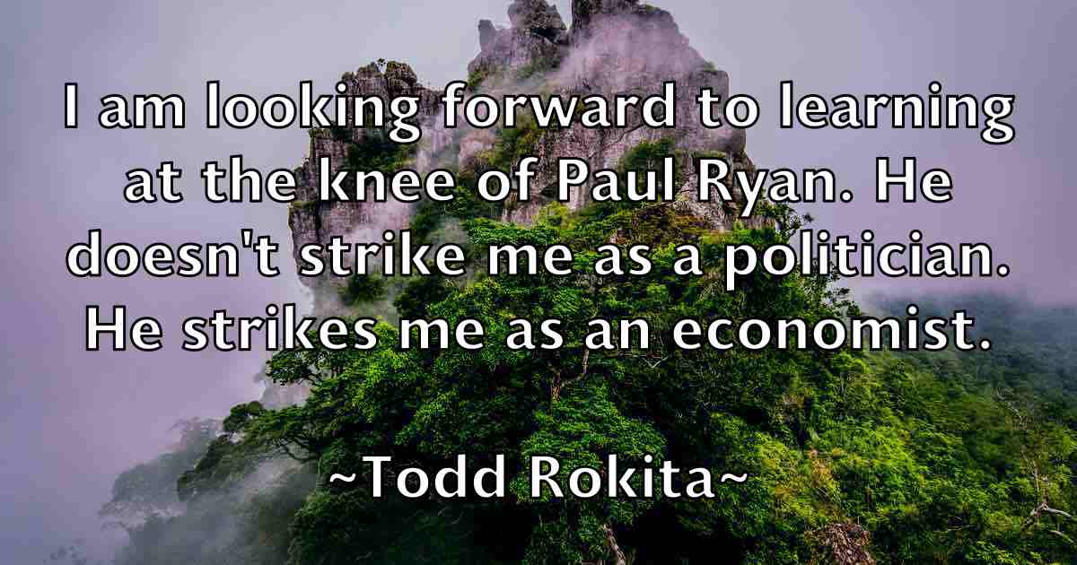 I am looking forward to learning at the knee of Paul Ryan. He doesn't strike me as a politician. He strikes me as an economist.