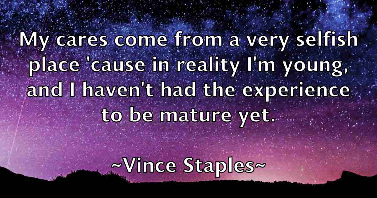 My cares come from a very selfish place 'cause in reality I'm young, and I haven't had the experience to be mature yet.