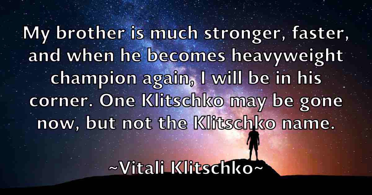My brother is much stronger, faster, and when he becomes heavyweight champion again, I will be in his corner. One Klitschko may be gone now, but not the Klitschko name.