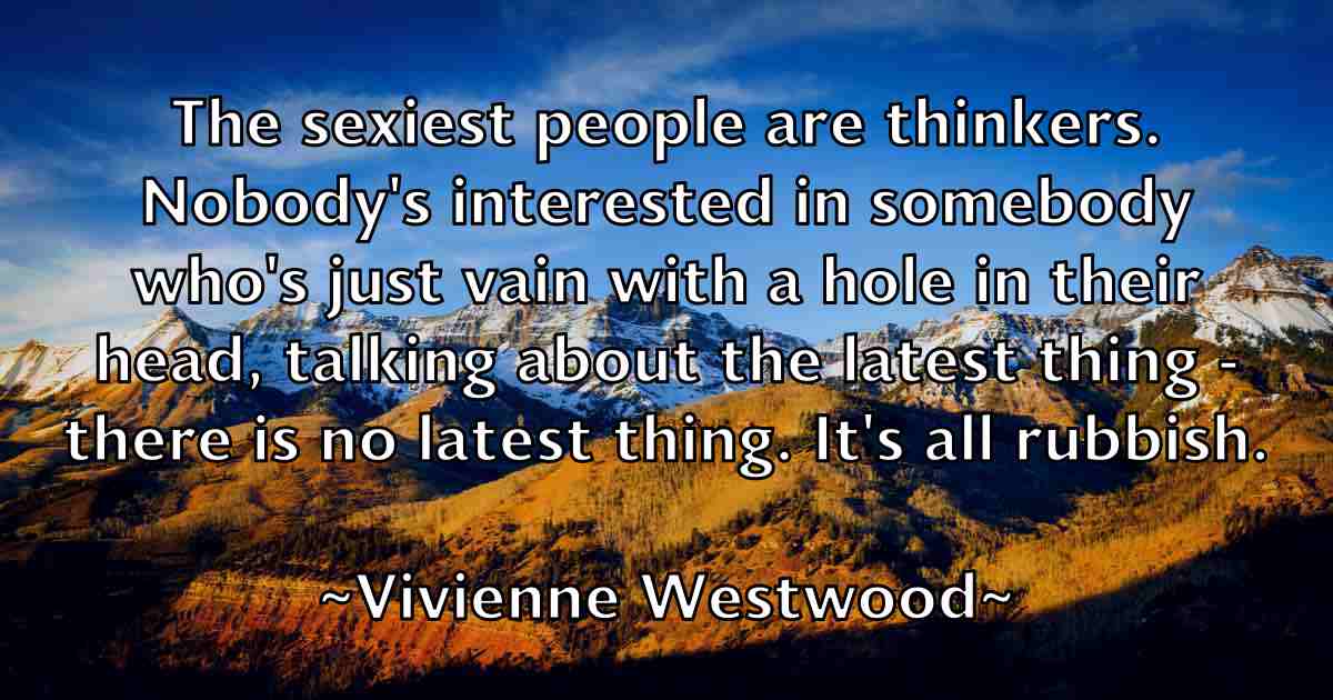 The sexiest people are thinkers. Nobody's interested in somebody who's just vain with a hole in their head, talking about the latest thing - there is no latest thing. It's all rubbish.
