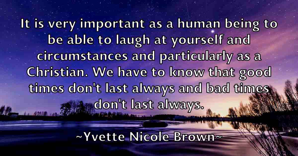 It is very important as a human being to be able to laugh at yourself and circumstances and particularly as a Christian. We have to know that good times don't last always and bad times don't last always.